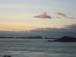 6時20分宿屋出発、多々羅大橋を渡って生口島の瀬戸田港までを走る。早朝の海岸線は
