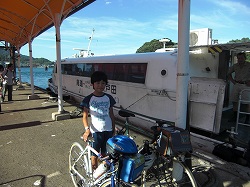 (宮浦港) (今日の高速艇は昨日よりも大きく、載せていても安心)