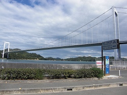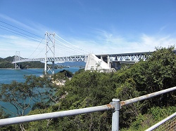 になる。しばらく走ると最初の橋は因島大橋に到着、この橋は道路の下に自転車・歩道のが