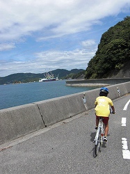 午7時50分、宿屋を出発。三村峠を越えて宮浦港に向かう。このルートは自転車道が