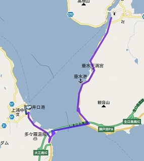 今治港〜サンライズ糸山→大島→伯方島→井口(大三島) 約50km