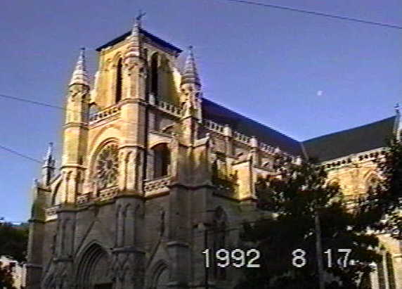 (ホテルフロントにて 準備OK) (ホテル前の大聖堂 昨日見学したところ)