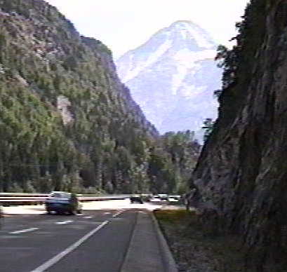 (シャモニー手前の上り坂) (シャモニーに到着 山の景色が素晴らしい)
