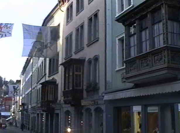 (ザンクトガレンの町並み 2階部分の出窓がポイント)