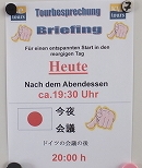 | 19:30〜 | 翌日のサイクリングのブリーフィング(ドイツ語・英語の2回) ※今回、英語は我々日本人だけだったので、途中からメッセージボードの掲示が日本語に変わりました。 ![]() |