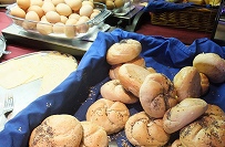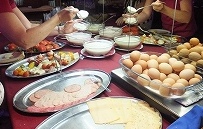 | 7:15〜 | 朝食(ビッフェスタイル)、サイクリングの昼食もここで各自作る。 (500mlの水のペットボトル1本受け取り) ![]() |