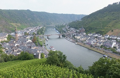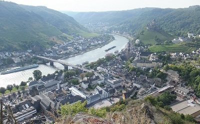 (展望台から見る コッヘム市街とコッヘム城:中央はモーゼル川)