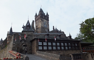 シンボル「コッヘム(ライヒスブルク)城」へ、街中から急坂を自転車を押していって見学時間前に