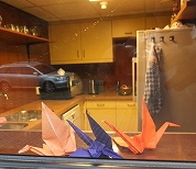 (1週間お世話になった{MS PATRIA」) (ラウンジのキッチンには子ども達がプレゼントした折り紙が) (TAXIで駅まで)