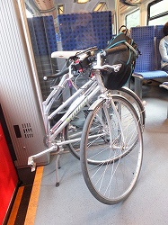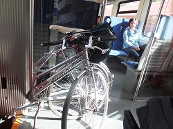 (列車内は通行の邪魔にならないように折りたたむ) (鉄道の旅はくつろぎます)