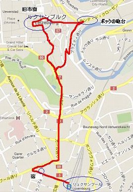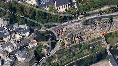 (ルクセンブルク徒歩で回ったルート) (世界遺産「ボックの砲台」)