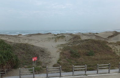 海岸線沿いを走っています。走り始めてすぐに砂丘展望台があり、そこで休憩。