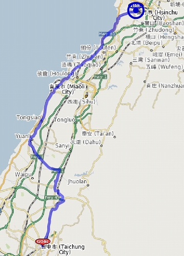 を通過し、国道13号・3号とつないで真北から台中を目指すルートに切り替えます。