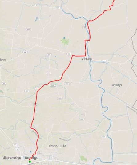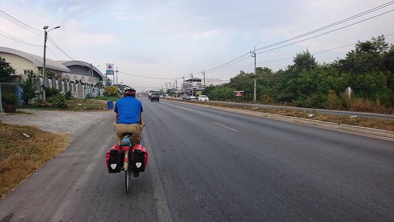 朝食前に自転車のパッキングをすまし、朝食後すぐに出発できるようします。8時前に出発。まずは、ナコーン・パトム中心部に