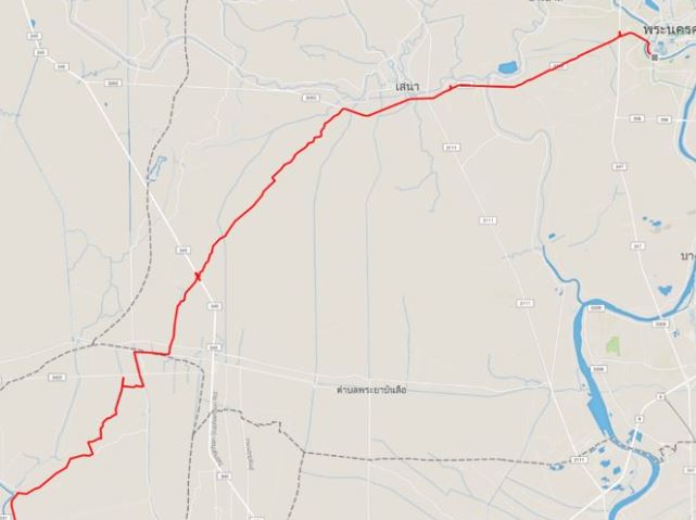 アユタヤまであと30km地点、3263号線の幹線道路に入る。ここまでローカル道を走ってきたのでコンビニの冷房が恋しくて