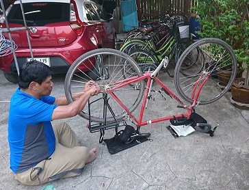 (本日の宿:アティタラ ホームステイ) (相方のスポークも折れたので修理します)