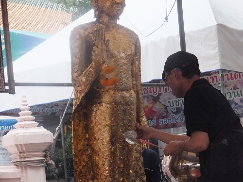 (旅の安全を祈願して私たちもお参りしていきます) (最後に仏像に金箔をはります)