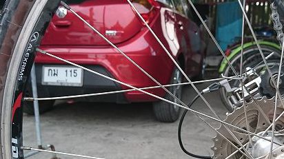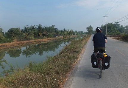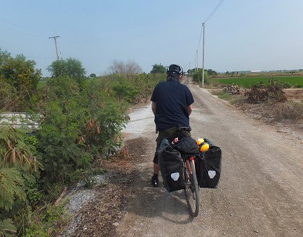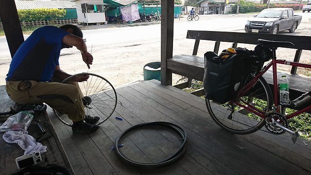 道をたどって北上しながらアユタヤに向かいます。途中、「パキン」という聞き覚えのある嫌な音が自転車の後輪から聞こえました。