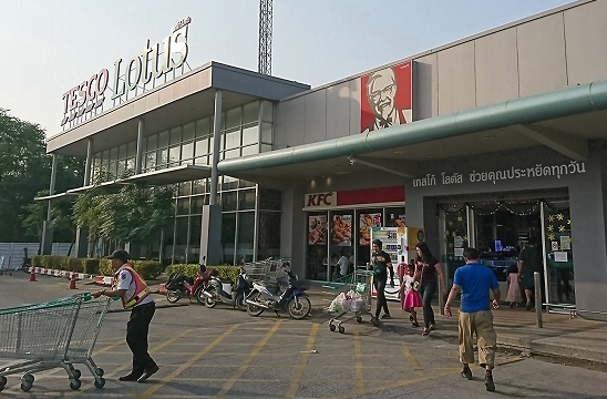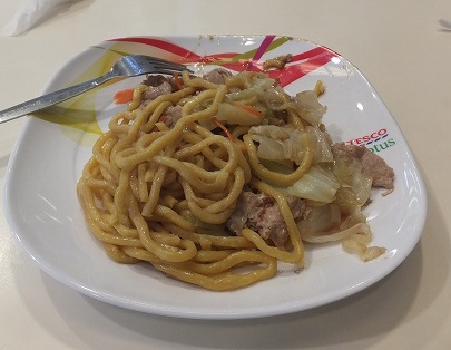 (アユタヤまであと1時間の距離。ショッピングセンターのフードコートで避暑休憩) (冷房の涼しさのおかげでようやく食欲がでました。焼きそば?)