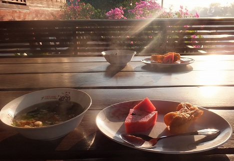 アユタヤの素晴らしい朝焼けの風景で目覚め、朝方は食欲もあったので朝食をしっかりいただきます。