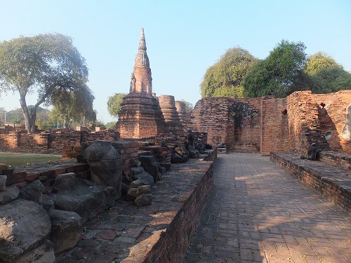 (アユタヤ市街を走ります) (市街地にはあちこちに遺跡があります)