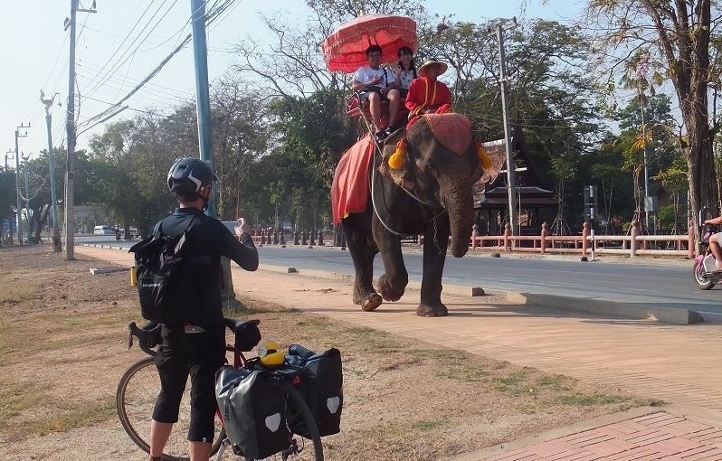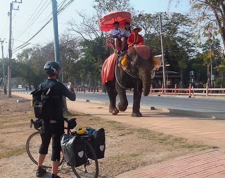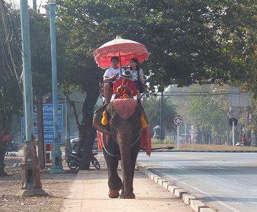 (ワット プララーム遺跡の入場口) (観光客を乗せた像がやってきました)