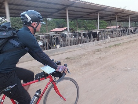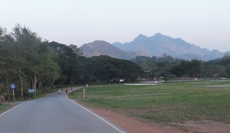 コンビニ等の休憩ポイントも多いので助かります。宿屋近くまでになると道路の勾配も出てきて、タイサイクリング初めての