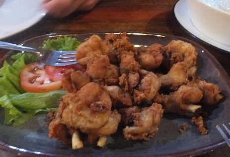 宿屋に到着後、すぐにシャワーを浴びて宿屋近くの食堂で夕食をいただきます。晩には涼しくなり食欲もわいてきたので
