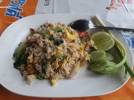 お昼は脇道の分岐の交差点にあった食堂でいただきます。走り始めて5日目でようやく体がタイの風土になれたよう