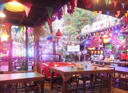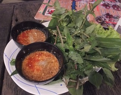 (宿近くで見つけたレストラン 後で調べたらヘベトナム料理らしい) (街の建物と明らかに異質の場所でした)