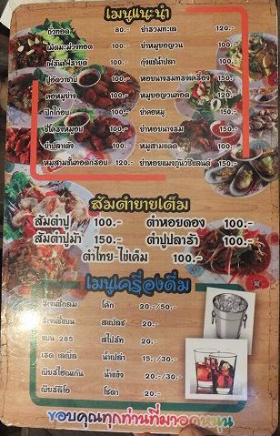 (メニューですがタイ語はさっぱりわからないので写真を見て決めました)