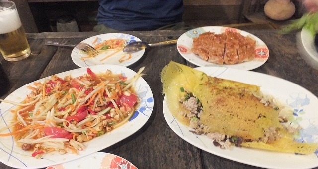 覗いたりして夕方まで散策し、晩に夕食を食べる食堂を探しました。宿の前の道路には目立った食堂がなく、困って