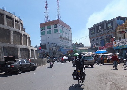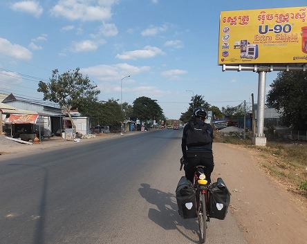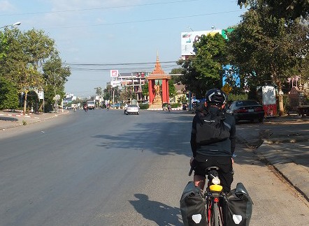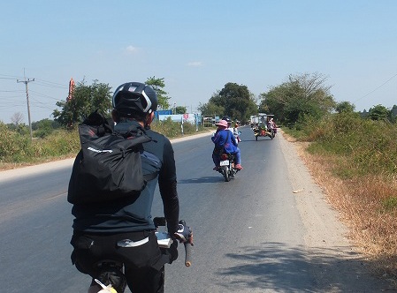 国境カンボジア側の街シソポンは、車・人が混とんとして自転車で走るには少しめんどくさい。早々に離れます。