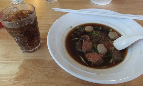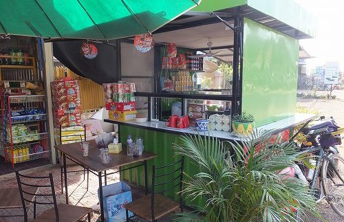 (カンボジアのGSに施設された食堂) (この旅初めてのラーメン)
