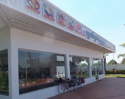 少し走ったGSに併設した食堂で昼食をいただきカンボジアの幹線道路5号線を進みます。カンボジアに入ると