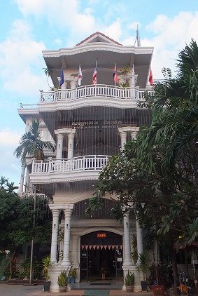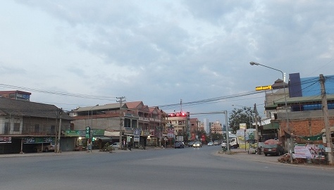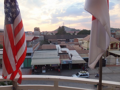 (本日の宿:ピラミッドホテル) (ホテルの3階テラスからのシソポンの風景)