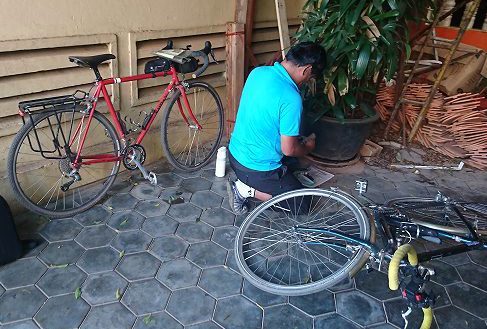 散策後ホテルに戻り、帰り支度の入ります。飛行機に乗せれるように自転車をばらして