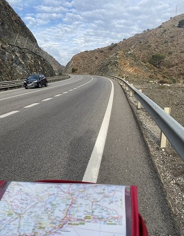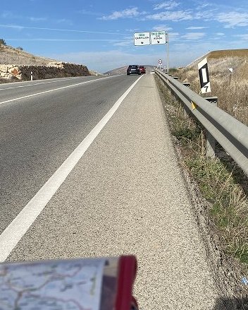 午前中はアルダレスまでの35km、手前に標高580mの峠越え、まずまずの交通量だがスペインの運転手は