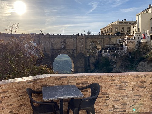 (宿屋にチェックイン この宿屋の良いところは宿屋のテラスからヌエボ橋を正面に眺められること)