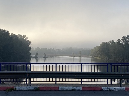 (8時半 周りが明るくなったのでウェルバの街を出発 今朝もすごい濃霧)