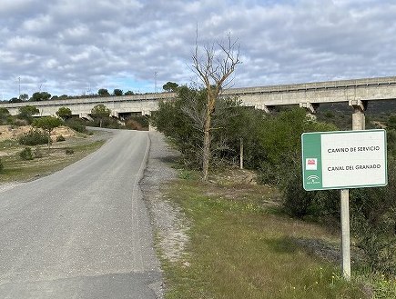 スペイン・ポルトガルの国境となるチャンサ貯水池から湧水されたボカ・チャンサ運河沿いの道路でした。