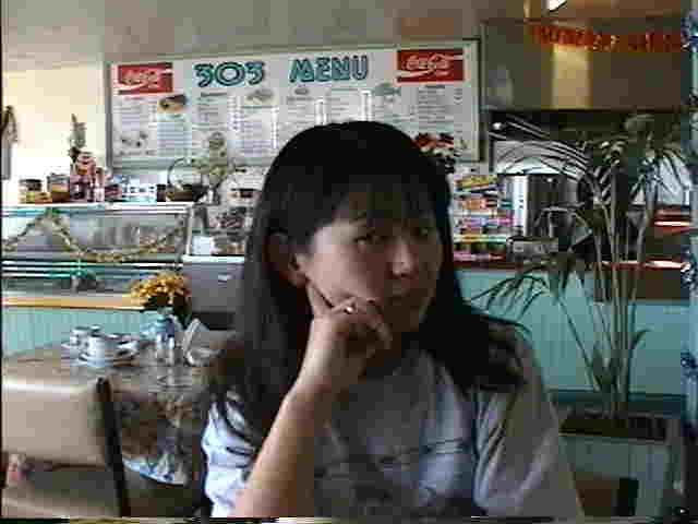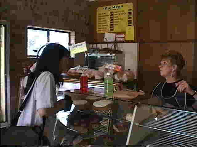 バーガーショップに入る。お互い注文をしレジで代金を支払おうとすると、高
