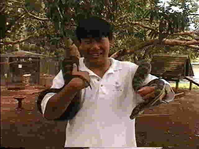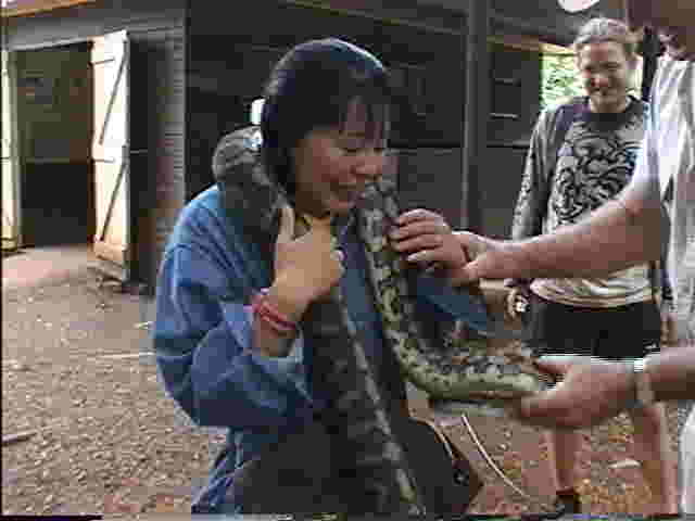 園長の旦那さんは、コアラを抱いて喜んでいる私達に、「君達、蛇を抱か