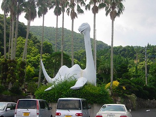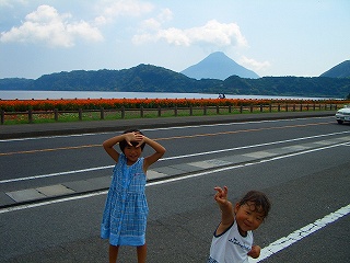 (池田湖からも開門岳が見える) (池田湖:イッシーの模型も)