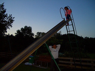 9時近く、NZの夕方、町の中心にある公園で子供達は楽しくお遊びして初日を終えました。