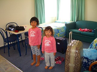 込む。フロントで家族4人だと伝えると案内してくれたのはベッドルームが2部屋で立派なキッチン