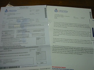 (NZから送られてきた違反切符)
