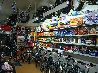 間に覗ける店を見て回る。当然1軒あった自転車屋も覗いてみた。そこはプラモデルと自転車の