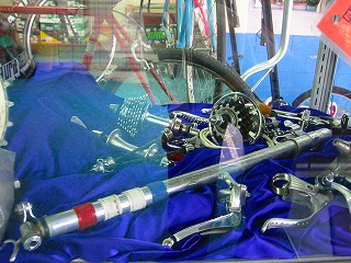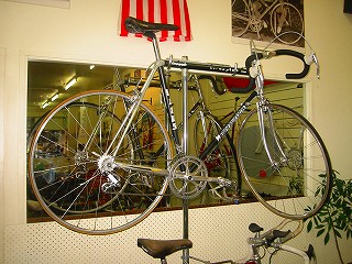 自転車もあった。ショーケースを覗くとDURA・EXとかカンパとか懐かしい部品が陳列されている。