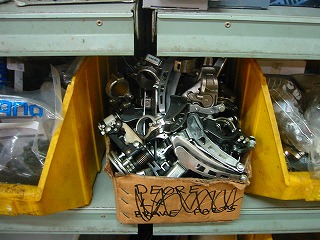 そのまま見学していると補修用部品棚にはサンプレがびっしり入った箱が・・・。会話をしようにも